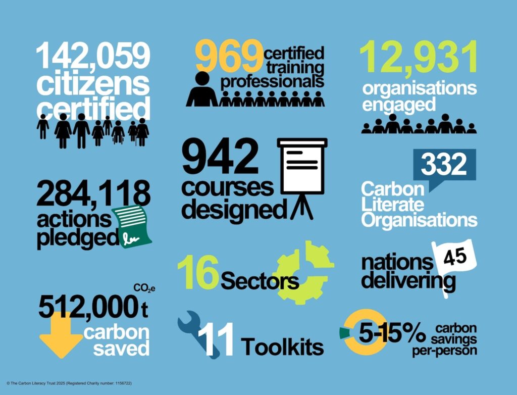 ** estimated by The Carbon Literacy Project based on carbon savings from pledges.